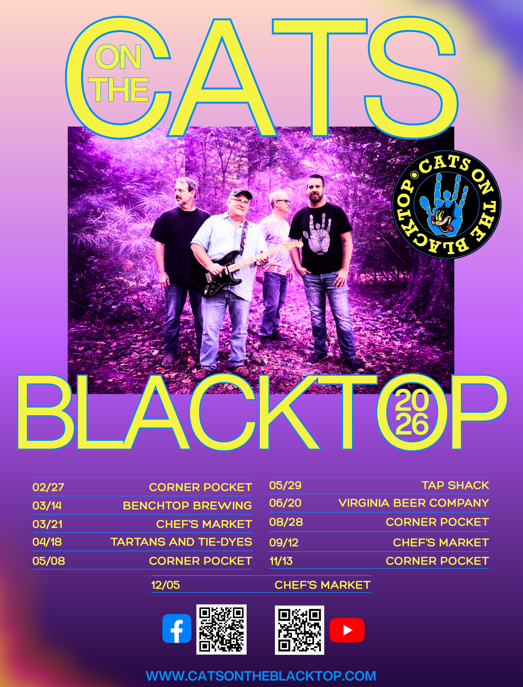 Cats On The Blacktop is a group of four musicians with a combined experience of 20+ years playing in bands like Dead Rise, Grateful Dawgs, Class One, Liquid, and Hallelujah Hatrack. Our genre of music includes Jerry Garcia, Grateful Dead, and Bob Dylan, to name a few. We are your go-to band in SE Virginia for a stellar Jerry Garcia Band vibe. Join us or book us for some legendary Jerry tunes that'll make you smile, smile, smile.