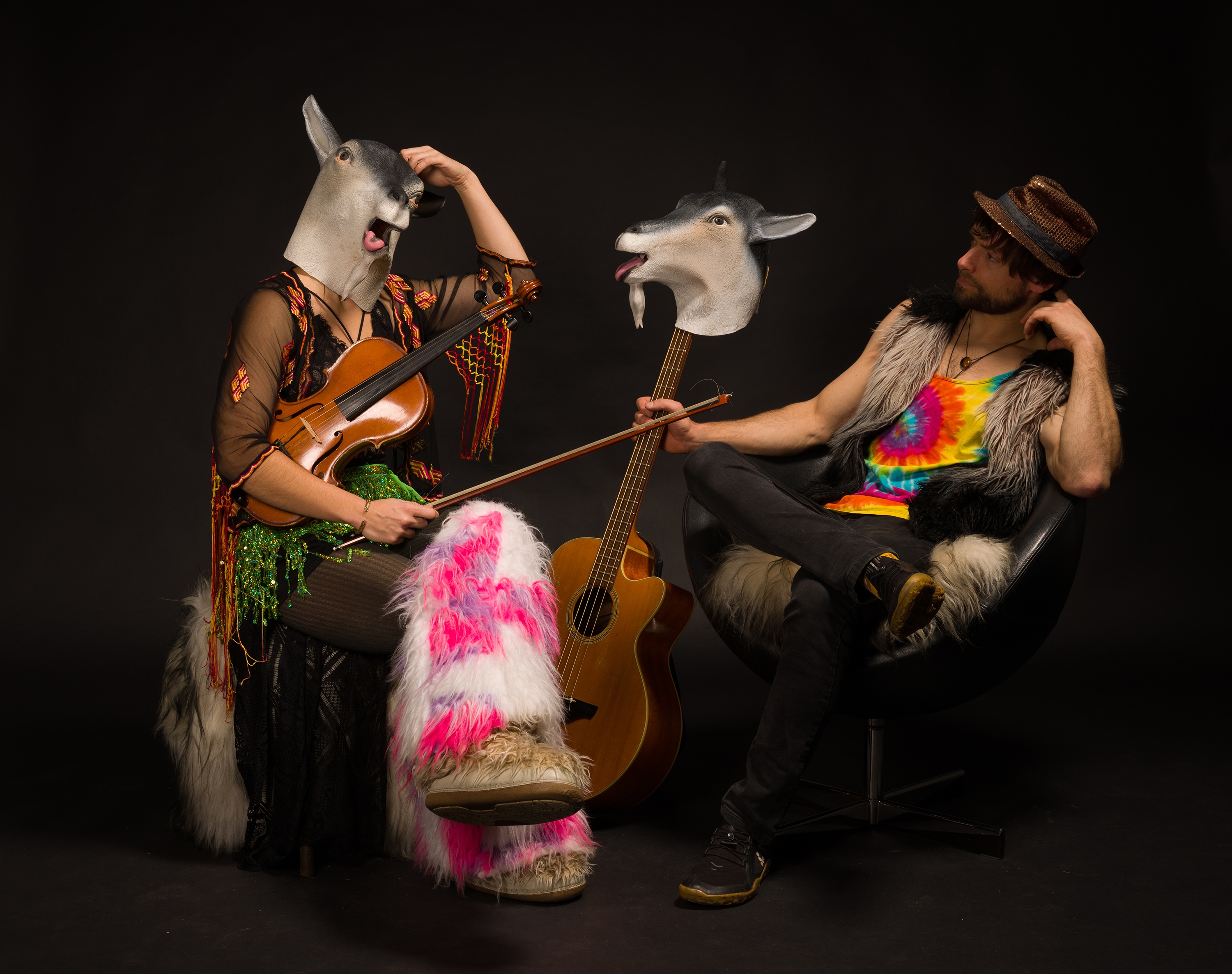 Psycho-acoustic Goat are a psychedelic duo creating eclectic goat themed stomp music on acoustic bass and violin. A cocktail of fx pedals, percussive style slap bass and a classically trained space goat on violin. They create stomping grooves and soaring melodies to dance and trance out to. Influences ranging from trance, rock, folk and psychedelic dance of all kinds adding an eccentric experimental twist.
